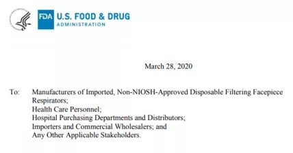 3月28日,在美國FDA新出臺的一次性呼吸器緊急使用授權(quán)(EUA)清單中,把中國KN95防護(hù)產(chǎn)品和GB2626-2006標(biāo)準(zhǔn)的產(chǎn)品都取消掉了。
