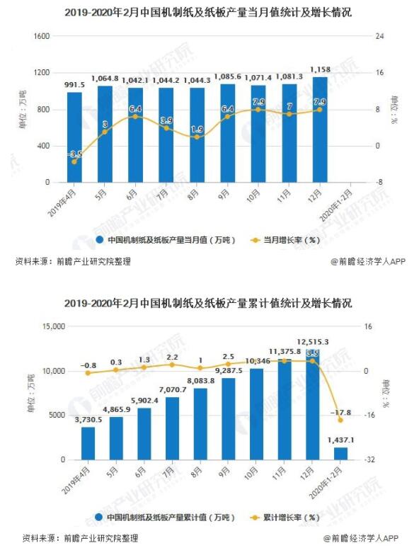 2020年1-2月中國機(jī)制紙及紙板產(chǎn)量超1400萬噸