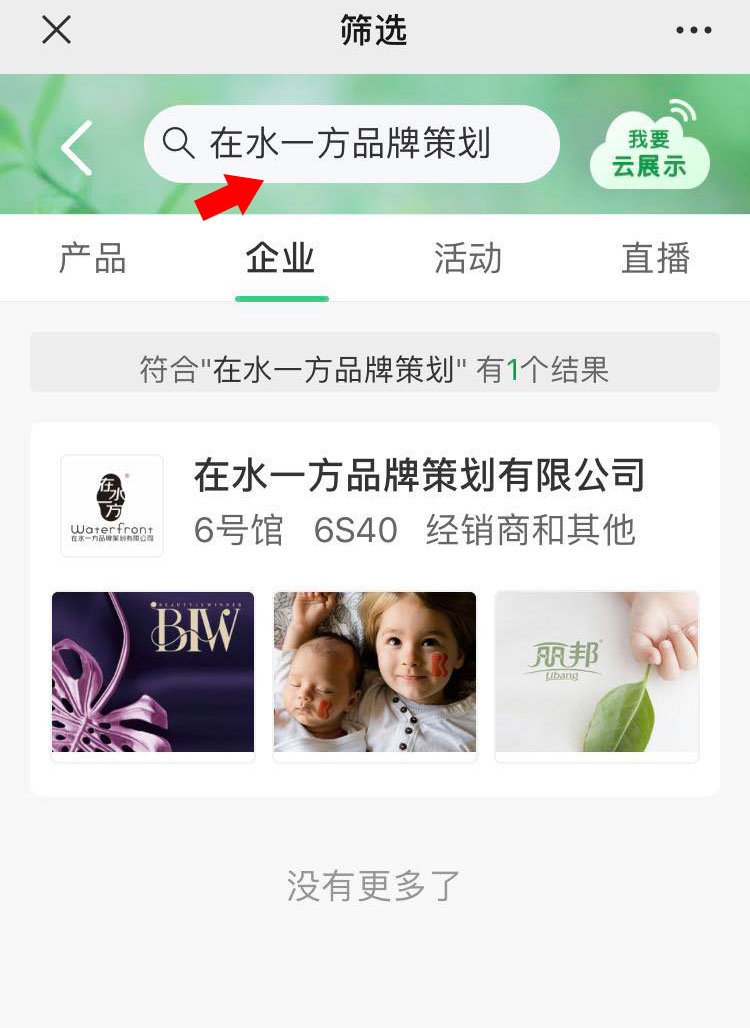 四、選擇“企業(yè)”這個(gè)選項(xiàng),在搜索框里輸入“在水一方品牌策劃” 搜索
