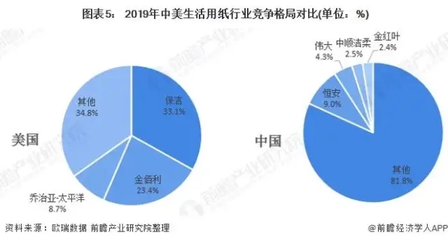 從產(chǎn)能口徑來看,行業(yè)產(chǎn)能前4的公司依次是恒安紙業(yè)、維達紙業(yè)、中順潔柔和金紅葉紙業(yè),除中順潔柔外,其他三家公司均未在A股上市(恒安國際和維達國際在港股上市)。根據(jù)各公司2019年產(chǎn)能數(shù)據(jù)測算,生活用紙行業(yè)的CR4僅為30%,CR8和CR10也分別僅有34.7%和36.3%。行業(yè)集中度對比美國存在較大提升空間,而環(huán)保政策趨嚴也將利好行業(yè)龍頭。另一方面,中國生活用紙的行業(yè)集中度與美國相比相對較低,部分原因是許多本地品牌和中小企業(yè)通過積極布局線上渠道和發(fā)展電商業(yè)務(wù)而快速發(fā)展崛起。線上業(yè)務(wù)開展成本較低,中小企業(yè)試錯成本較低,它們通常通過提供具有競爭力的價格的產(chǎn)品而受到歡迎。但長期來看,品牌化、高質(zhì)化依然是明確的行業(yè)消費趨勢。