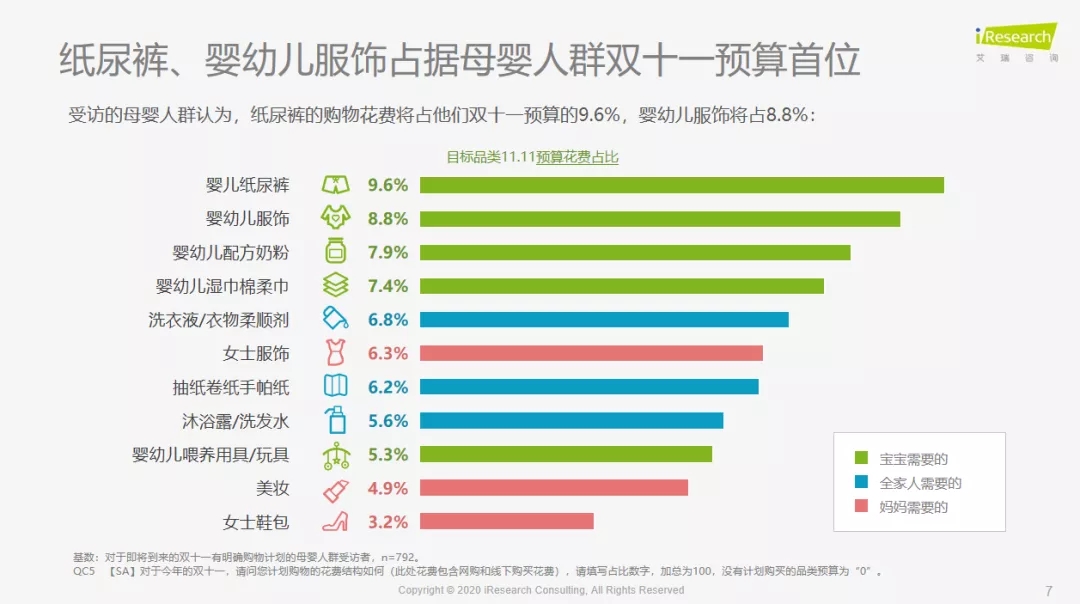 雙11母嬰消費行為洞察:紙尿褲、嬰幼兒服裝占預(yù)算首位,媽媽自身消費排在最后