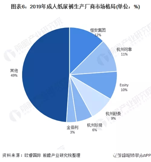 在成人紙尿褲生產(chǎn)廠商中,恒安集團、杭州可靠、Essity市場份額超過10%。排名前六的成人紙尿褲生產(chǎn)廠商市場份額為51.04%,市場集中度相對較高,生產(chǎn)廠商之間市場份額沒有拉開明顯的差距,市場競爭相對激烈。.jpg)