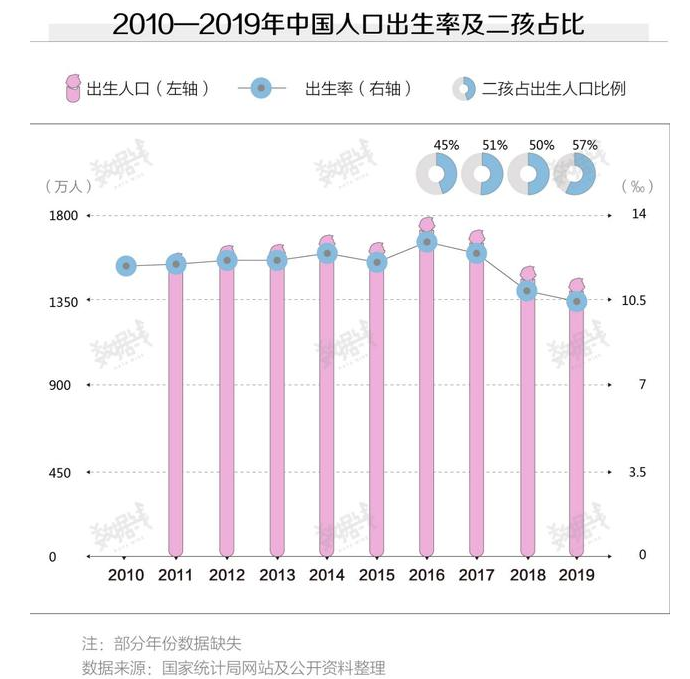 2017年,我國出生人口數(shù)量達(dá)到1723萬人,其中二孩占比達(dá)到51%,首次超過一孩。截至2019年,二孩數(shù)量已經(jīng)連續(xù)三年占據(jù)出生人口數(shù)量的一半以上。.png)
