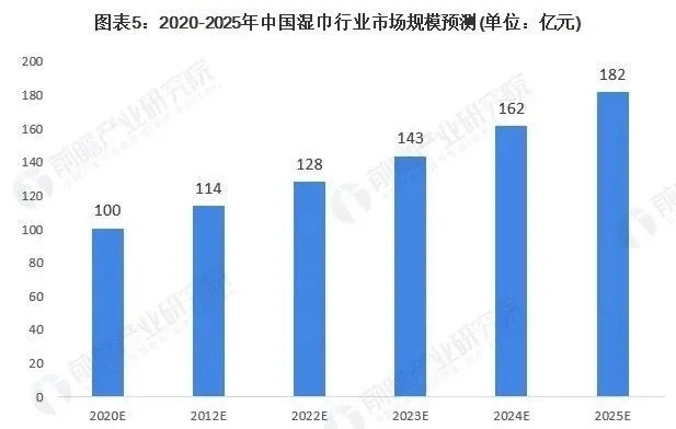 由此可見我國濕巾市場仍有巨大空間,我國經(jīng)濟積極向好,居民消費能力及意愿不斷提升,企業(yè)不斷探索制造多元化的濕巾,且經(jīng)過疫情我國濕巾行業(yè)發(fā)展前景更為明朗,預(yù)計2025年市場規(guī)模有望達(dá)到182億元。