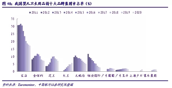 目前市場競爭格局的變化說明我國嬰兒衛(wèi)生用品市場尚未成熟,仍存在發(fā)展的較大空間,在消費升級和市場體量擴張下外資企業(yè)和國內(nèi)新銳企業(yè)都有規(guī)模增長、擴張市場份額的機會。短期內(nèi)我國嬰兒衛(wèi)生用品市場的行業(yè)集中度可能不會快速回升,新銳品牌的加入推動了產(chǎn)品升級也給行業(yè)帶來了活力和更多競爭,國產(chǎn)品牌具有本土化的電商營銷能力與新渠道把控力,以及適應(yīng)性更強的新品迭代能力,因此和外資品牌的拉鋸戰(zhàn)可能會持續(xù)進行。長期來看,參考女性衛(wèi)生用品市場的發(fā)展路徑,市場成熟后外資品牌的品牌效應(yīng)會逐步顯現(xiàn),未能成功樹立品牌影響力的國產(chǎn)新銳品牌或?qū)⒅鸩酵顺鍪袌觯袠I(yè)屆時將再次向龍頭集中聚攏。