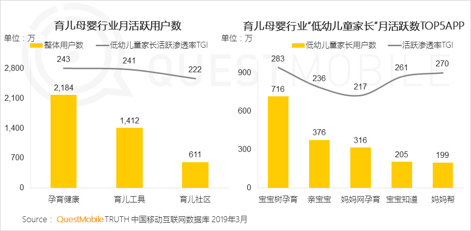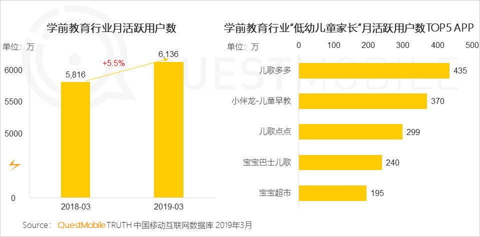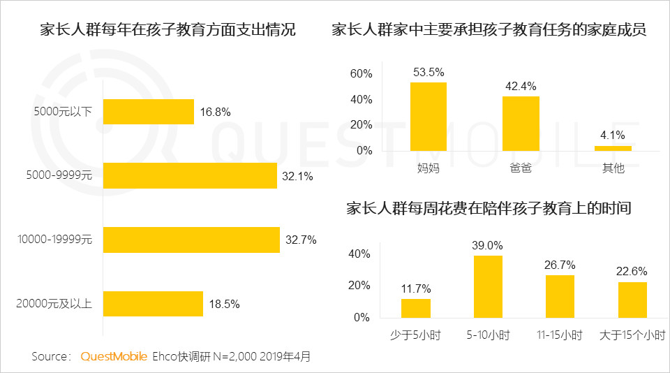 “低幼兒童家長(zhǎng)”(泛指0-6歲家長(zhǎng)人群)人群關(guān)注領(lǐng)域包括在線(xiàn)消費(fèi)、幼兒教育、育兒社區(qū)、親子旅游。2016年“全面二孩”政策實(shí)施以后,中國(guó)新生兒童數(shù)量經(jīng)歷了兩年快速增長(zhǎng)后有所回落,學(xué)齡前兒童數(shù)量維持穩(wěn)定態(tài)勢(shì),但二胎政策帶來(lái)人口利好,低幼經(jīng)濟(jì)價(jià)值凸顯,據(jù)QuestMobile數(shù)據(jù)顯示,目前中國(guó)0-6歲兒童人數(shù)約1億,0-6歲兒童消費(fèi)市場(chǎng)規(guī)模已超1.5萬(wàn)億,“低幼兒童家長(zhǎng)”用戶(hù)規(guī)模快速增長(zhǎng)已經(jīng)接近2.7億,在中國(guó)家庭中,超八成的家長(zhǎng)每年在孩子的教育方面支出均在5000元以上,“寶媽”是教育決策的主要決策者,也就是說(shuō),每年在那些呱呱哭叫的嬰幼兒的小手里,0-6歲的媽媽們足足攥著“真金白銀”。