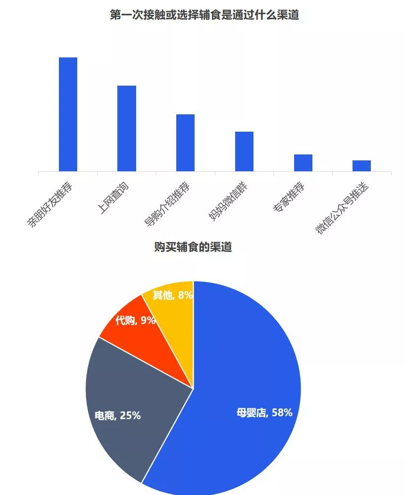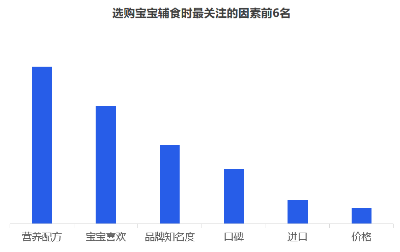 但是對(duì)于品牌而言,最重要的是洞察需求,一個(gè)好的洞察,一定是清晰揭示消費(fèi)者的傾向,暗示了一個(gè)市場(chǎng)機(jī)會(huì)。究竟品牌入局輔食的機(jī)會(huì)有多大,媽媽們是如何看待輔食的? 從當(dāng)前的嬰幼兒用品的采購(gòu)情況來(lái)看,媽媽負(fù)責(zé)嬰幼兒用品的采購(gòu),用戶占比超七成。奶爸也會(huì)經(jīng)常協(xié)助寶媽,參與到嬰幼兒用品的采購(gòu)活動(dòng)中,用戶占比為41.7%。 從近一年的百度指數(shù)來(lái)看,目前關(guān)注輔食最突出的地域是廣州、浙江、江蘇、山東、北京等,可見(jiàn),當(dāng)前一二線城市的消費(fèi)者對(duì)輔食的認(rèn)知教育有所提高,但是低線城市的消費(fèi)者對(duì)寶寶輔食的添加還不重視。 其次,從年齡段來(lái)看,“30-39歲”的消費(fèi)人群對(duì)輔食的關(guān)注度最高,而在這其中,女性對(duì)輔食的關(guān)注度遠(yuǎn)高于男性。 2019年母嬰行業(yè)觀察通過(guò)線上調(diào)研近10000人數(shù)的家長(zhǎng)進(jìn)行了輔食調(diào)查,其中80后占據(jù)24%,85后占據(jù)26%,90后44%,95后4%,對(duì)輔食的態(tài)度如下: 1、幾乎所有的媽媽都認(rèn)為有必要給寶寶添加輔食,并且有一半的媽媽認(rèn)為要在6個(gè)月時(shí)添加,而有32%的媽媽認(rèn)為在6個(gè)月-1歲開(kāi)始添加,還有16%的人在6個(gè)月以前就添加輔食。 2、大部分寶寶的輔食來(lái)源都是“購(gòu)買與自制”相結(jié)合,而在購(gòu)買輔食時(shí),媽媽們購(gòu)買最多的類型依舊是米粉,其次則是餅干、磨牙棒等小食品、營(yíng)養(yǎng)面等。 3、互聯(lián)網(wǎng)與社交圈對(duì)媽媽的購(gòu)買決策權(quán)的影響力較大,據(jù)調(diào)查顯示,媽媽們第一次接觸或選擇輔食大多都是通過(guò)親朋好友推薦,上網(wǎng)查詢等。當(dāng)然消費(fèi)者在購(gòu)買嬰兒輔食的渠道選擇上,其實(shí)與奶粉并無(wú)不同,為了保證產(chǎn)品的質(zhì)量和安全性,同時(shí)也為了可以得到育嬰專家的指導(dǎo)和幫助,消費(fèi)者更傾向于在專業(yè)的母嬰用品連鎖店或主流電商平臺(tái)購(gòu)買食品。 4、隨著85后、90后新生代父母的崛起,他們與父輩的消費(fèi)觀念并不相同,不再執(zhí)著與于進(jìn)口與價(jià)格等,而是開(kāi)始關(guān)注是營(yíng)養(yǎng)配方,重要的是寶寶喜歡。 5、對(duì)于寶寶而言,自添加輔食開(kāi)始,都是與奶粉喂養(yǎng)相結(jié)合,目前超一半的寶寶每天食用輔食的頻率都是一天兩頓。當(dāng)然這在一定程度上也決定了每個(gè)月在寶寶的輔食上的花費(fèi)是多少,從月消費(fèi)來(lái)看,可以明顯看出200以內(nèi)的將近半數(shù),當(dāng)然也可以看出花費(fèi)在300以上的有21%,可見(jiàn),對(duì)于嬰兒食品這個(gè)特殊的品類,以及嬰幼兒這個(gè)特殊的消費(fèi)人群,消費(fèi)持續(xù)升級(jí)仍然明顯。近兩年來(lái),嬰幼兒輔食高端化、有機(jī)化趨勢(shì)明顯。 近幾年來(lái),越來(lái)越多的媽媽意識(shí)到輔食的重要性,隨著我國(guó)居民可支配的收入不斷提高,消費(fèi)者投入了更多的關(guān)注給自己的孩子,作為寶寶的第二餐,消費(fèi)者愿意投入更多費(fèi)用,使用周期會(huì)不斷變長(zhǎng),且更注重輔食產(chǎn)品的品質(zhì)和質(zhì)量??梢?jiàn)隨著消費(fèi)水平的提升,年輕父母對(duì)于對(duì)孩子的飲食質(zhì)量、飲食營(yíng)養(yǎng)的投入更加重視,會(huì)更追求高附加值、高品質(zhì)的輔食,中國(guó)輔食市場(chǎng)會(huì)繼續(xù)高速發(fā)展。