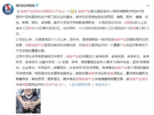 隨著中國老齡化進程的加快,產(chǎn)業(yè)發(fā)展的機遇也逐漸到來。近日,#老齡產(chǎn)業(yè)將成為我國動力產(chǎn)業(yè)之一#引發(fā)網(wǎng)民熱議~